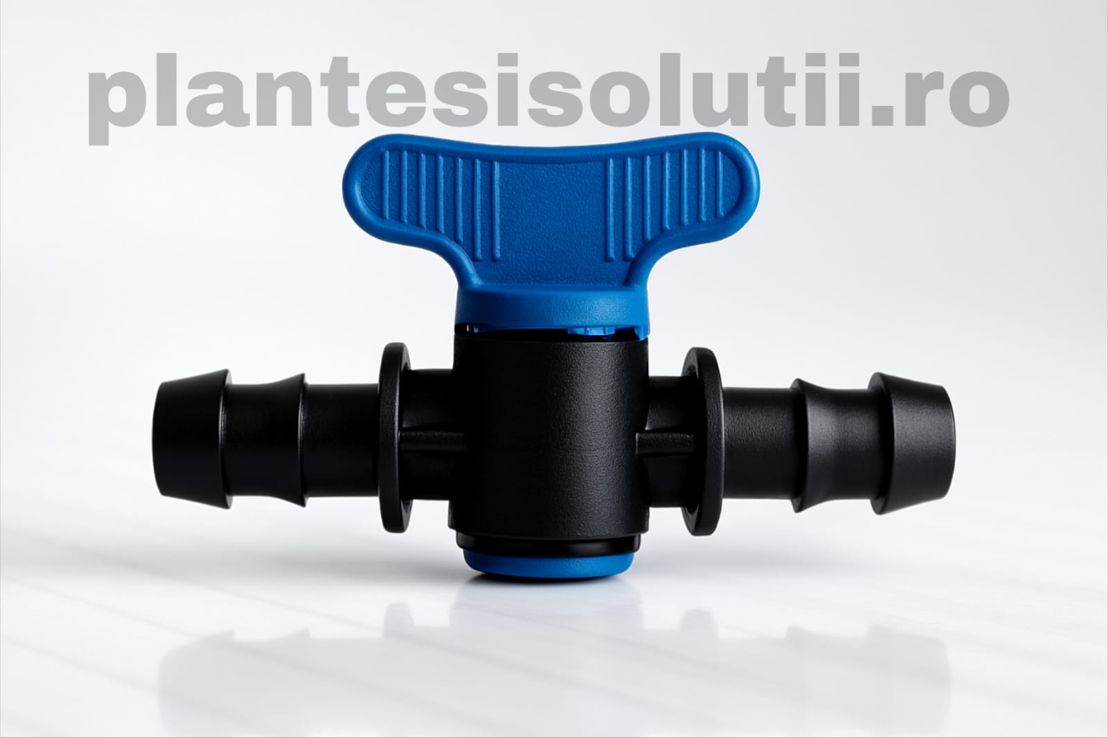 Robinet pentru tubul de irigare (minivalve), se utilizeaza ca si start conectorii ca piese de legatura intre teava de apa si tubul de irigare prin de picurare. Pot fi utilizati pentru instalatie de irigare prin picurare tip tub dar si pentru instalatie de irigare prin picurare tip banda. Avantajul utilizarii robinetului in montarea sistemelor de irigare prin picurare tip tub este ca poate fi oprita complet irigarea pe randul respectiv. Pentru a lega robinetul de teava de apa este necesara o garnitura!