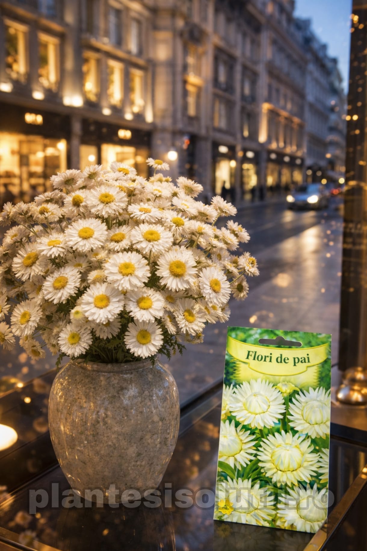 🌸 Florile sunt albe, cu textură de pai, își păstrează forma și culoarea timp îndelungat.
